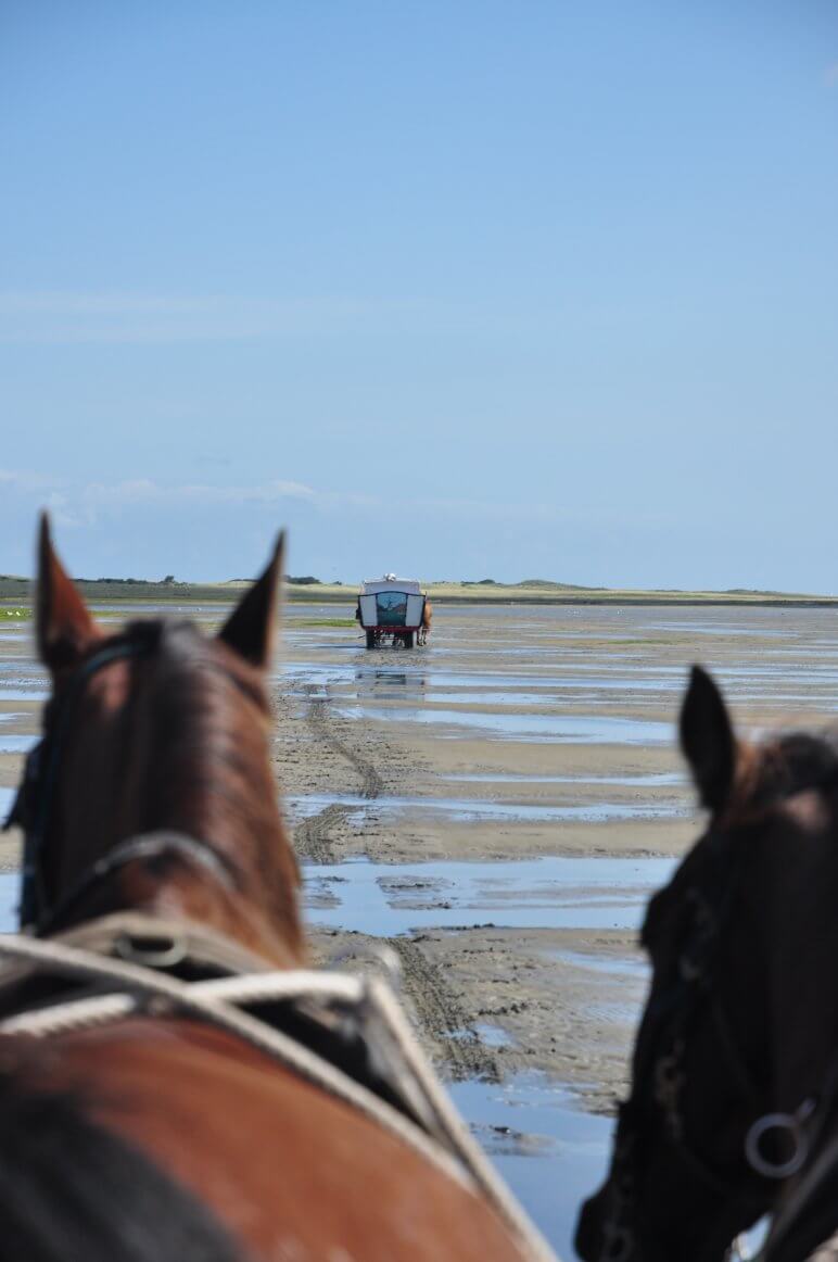 De tocht met de huifkar geeft een gevoel van verbondenheid met het eiland en de natuur. Het geluid van de hoeven, de zilte zeelucht en het weidse uitzicht over strand en zee maken dit tot een bijzonder en intiem afscheid.