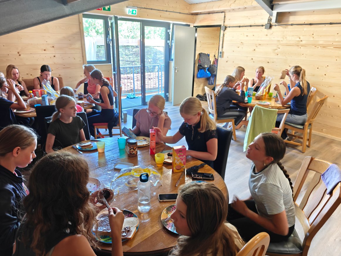 Op de bovenverdieping bevinden zich comfortabele gastenverblijven, die tijdens de schoolvakanties worden gebruikt voor onze ponykampen. Deze verblijven zijn voorzien van goede sanitaire voorzieningen en een gezamenlijke ruimte met keukenblok, waar gezamenlijk gegeten kan worden.