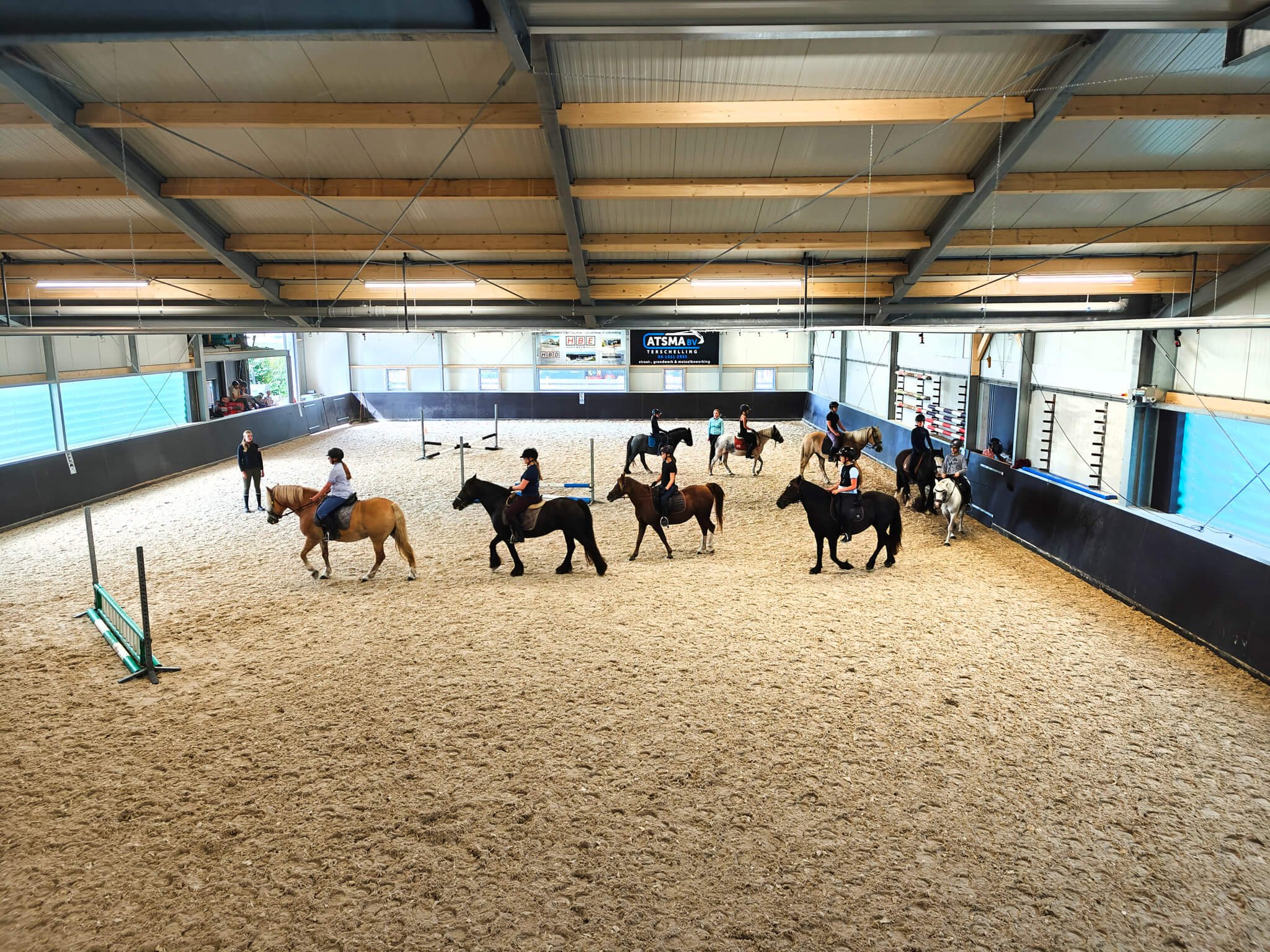 Afgelopen zomer hebben wij met trots onze compleet nieuw gebouwde stal in gebruik genomen. De stal beschikt over een overdekte binnenbak van ruim 800 vierkante meter, comfortabele en ruime, diervriendelijke boxen en goed ingerichte wasplaatsen voor de paarden.