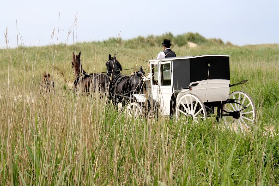 Op deze dag kunnen we jullie en jullie gasten ophalen en brengen naar de gewenste locatie. Jullie gezelschap kan worden vervoerd met onze huifkarren; in totaal kunnen we groepen tot 200 personen meenemen. Onderweg rijden we door bossen, duinen, cranberryvelden en over het strand, zodat jullie gasten meteen iets van het eiland beleven. Onze ervaren koetsiers vertellen onderweg graag mooie verhalen.